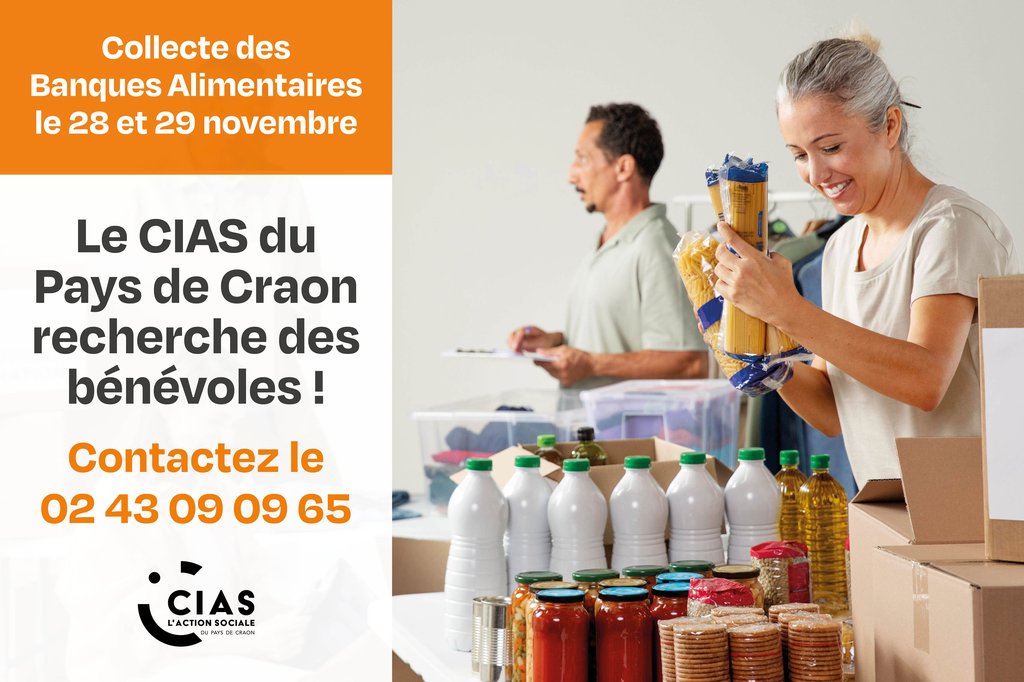 Le Centre Intercommunal du Pays de Craon recherches des bénévoles dans le cadre des collectes pour la Banque Alimentaire organisées le vendredi 28 et samedi 29 novembre prochain.