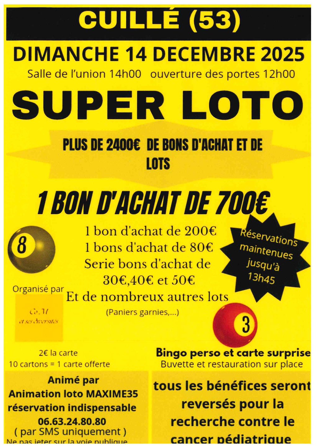Super Loto le dimanche 14 décembre à partir de 12h00.
